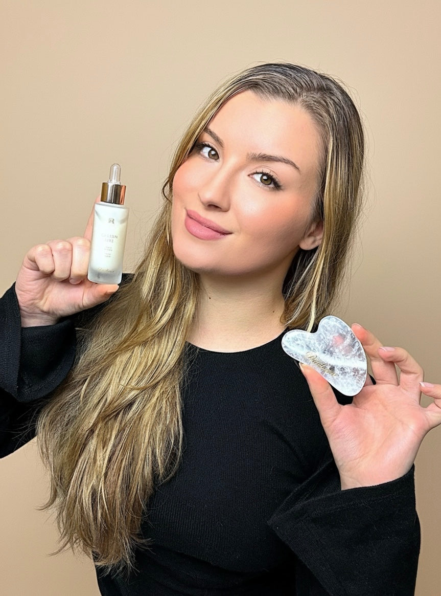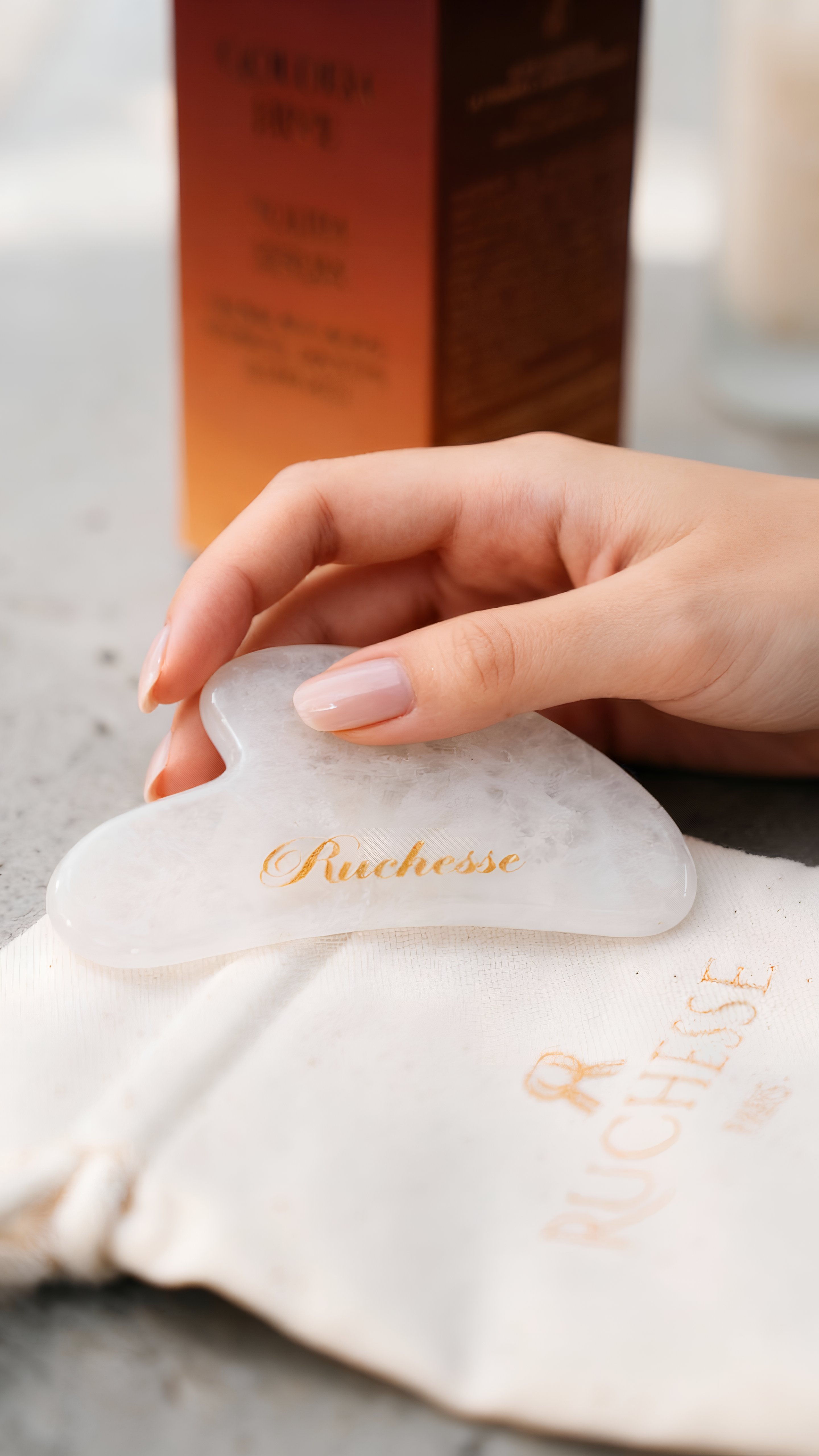 Véritable expérience de beauté globale, le rituel Ruchesse associe soin intérieur et gestuelle experte. Pensé pour accompagner la peau du matin au soir, ce rituel combine collagène marin, sérum jeunesse et massage au Gua Sha afin d’hydrater, lisser et révéler l’éclat naturel de la peau, jour après jour. Un moment de bien-être complet, pour des résultats visibles et durables.
